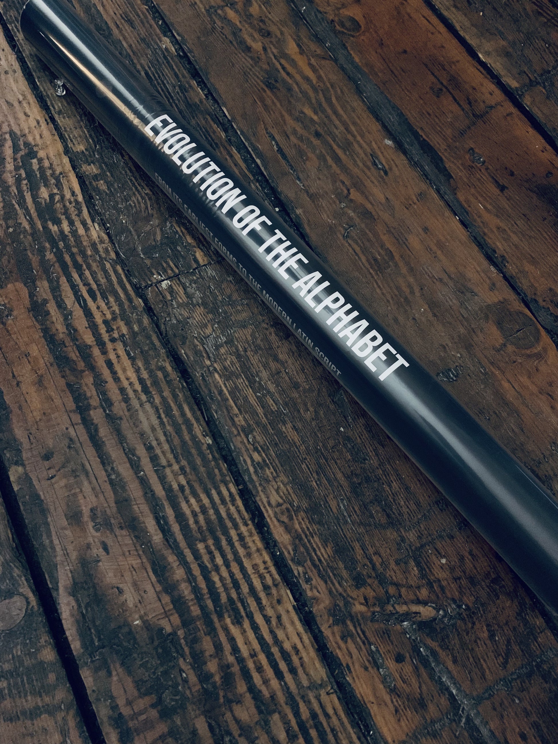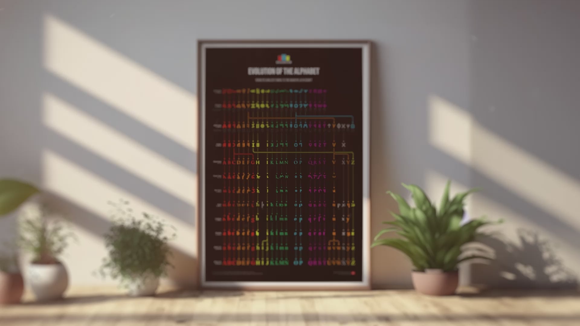 This poster illustrates the transformation of the alphabet from Proto-Sinaitic origins to modern forms, highlighting the changes each letter has undergone throughout history.