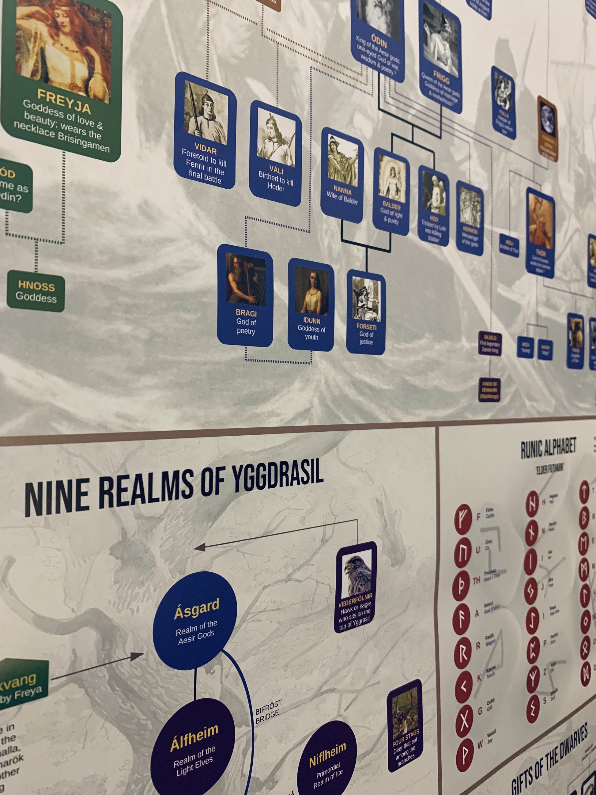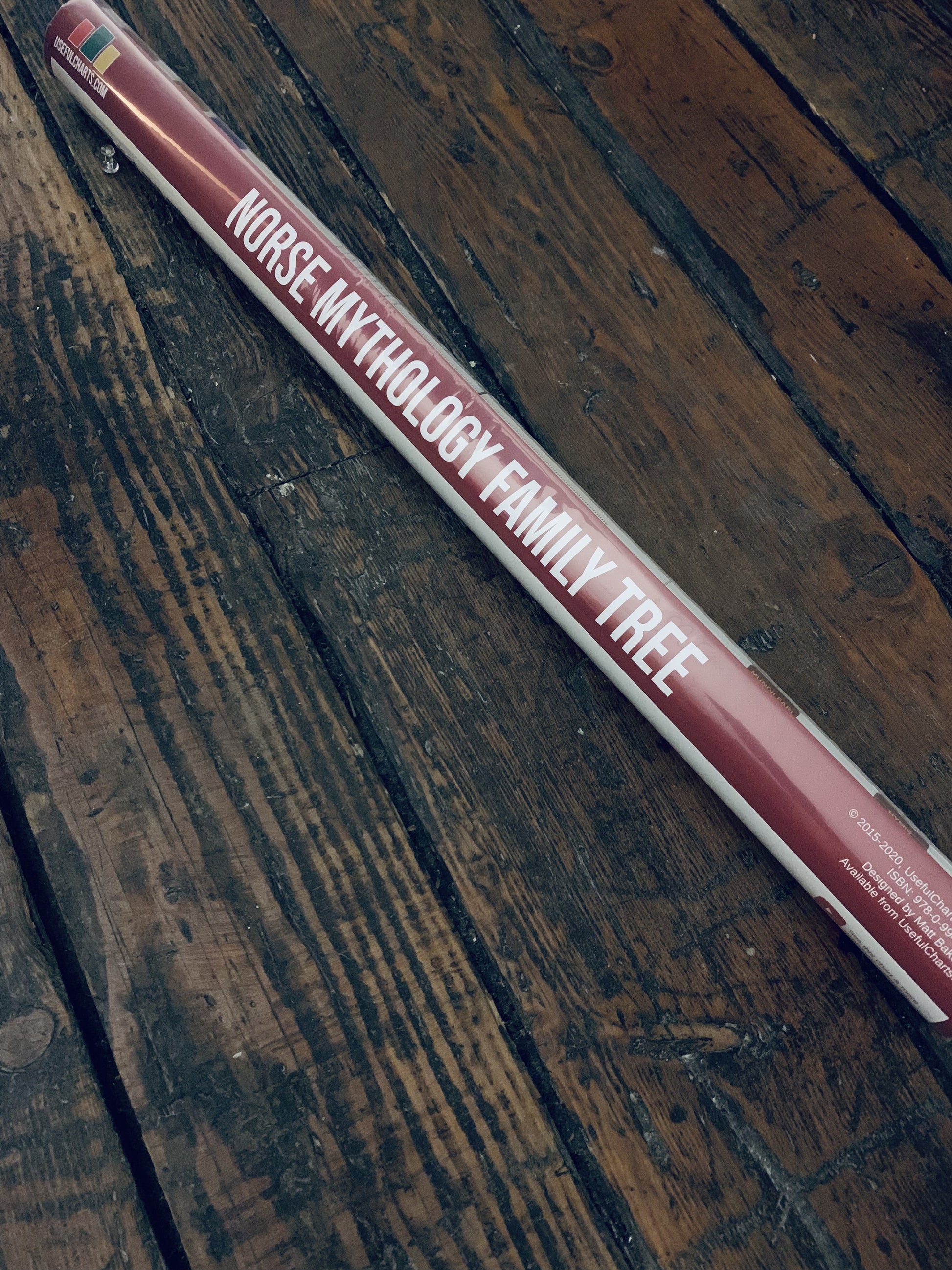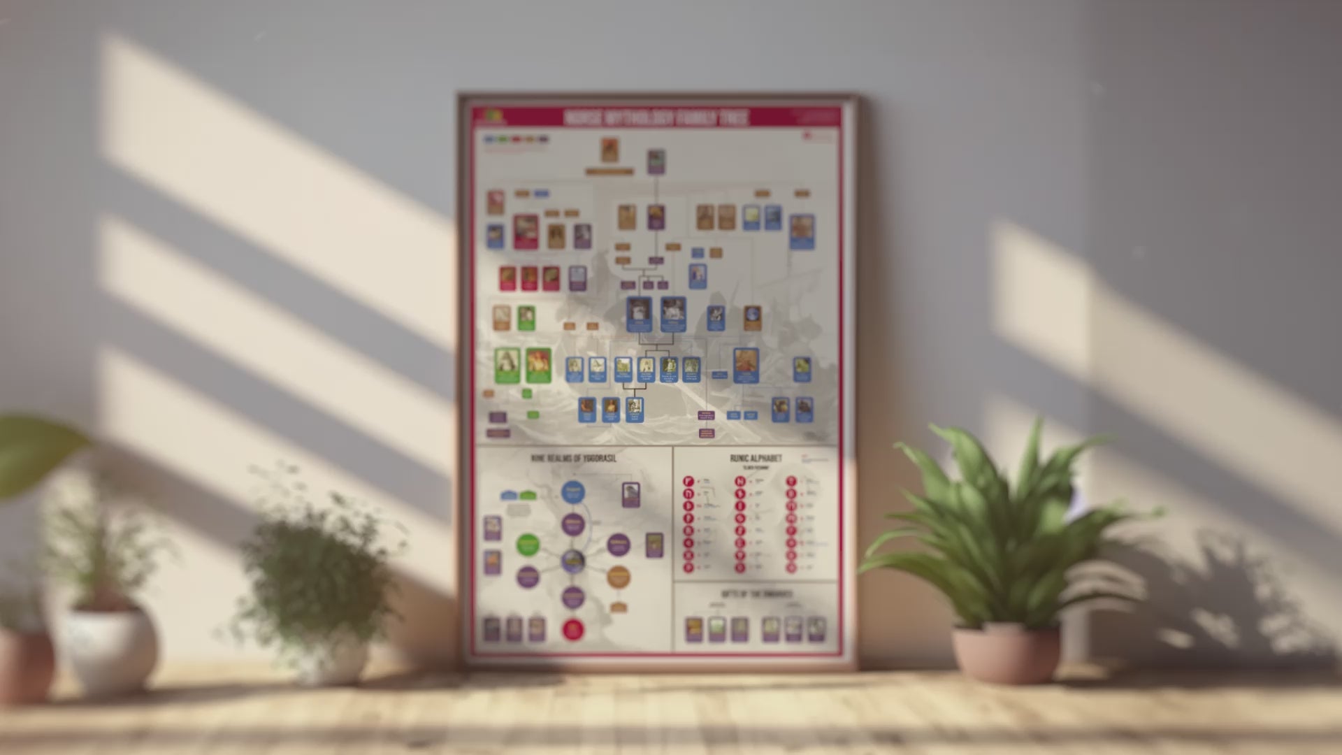 Discover the intricate family tree of Norse gods and mythical beings, accompanied by a detailed map of Yggdrasil’s nine realms and an easy-to-follow guide to the runic alphabet. This poster brings Norse mythology to life in a captivating and educational format.