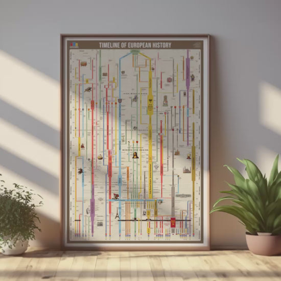This poster presents European history from 843 to today, displaying key countries side by side. It allows you to easily compare events across regions and understand how historical moments connect throughout Europe.